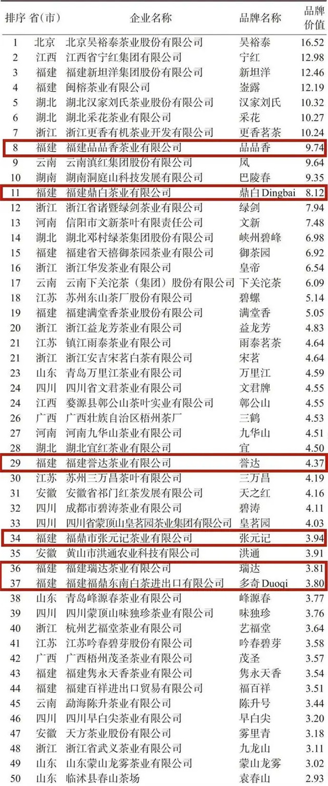 近日,作為中國(guó)茶產(chǎn)業(yè)風(fēng)向標(biāo)的《2020中國(guó)茶葉企業(yè)產(chǎn)品品牌價(jià)值評(píng)估報(bào)告》及《2020中國(guó)茶葉企業(yè)產(chǎn)品品牌價(jià)值評(píng)估前100位》數(shù)據(jù)公布,福鼎9家茶企10個(gè)茶葉產(chǎn)品品牌成功入圍百?gòu)?qiáng)排行榜。福鼎白茶品牌建設(shè)正呈現(xiàn)出一種百花齊放的新局面。