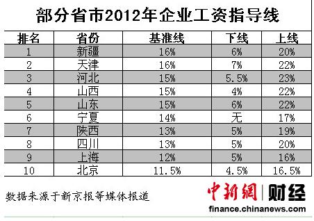 10省市2012年企業(yè)工資指導線一覽