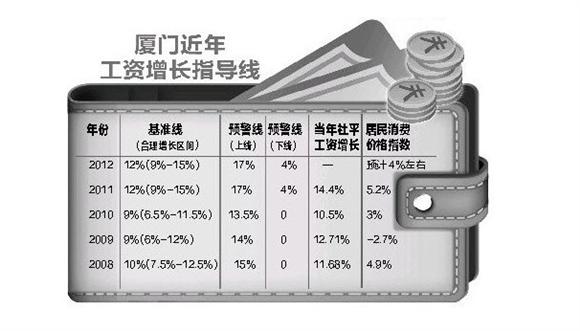 昨日,廈門市人力資源和社會保障局經(jīng)省人社廳審核,發(fā)布了2012年廈門市企業(yè)工資增長指導(dǎo)線。