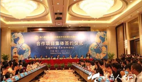 東南網(wǎng)11月28日海口專(zhuān)電(本網(wǎng)特派記者盧金福)今日下午,第八屆泛珠三角區(qū)域合作與發(fā)展論壇暨經(jīng)貿(mào)洽談會(huì)合作項(xiàng)目集體簽約儀式在海南海口舉辦。福建共有10項(xiàng)集體項(xiàng)目在現(xiàn)場(chǎng)簽約,總投資128.86億元;會(huì)期簽約項(xiàng)目49項(xiàng),總投資427.43億元。集體項(xiàng)目簽約后,還舉辦了第八屆泛珠大會(huì)經(jīng)貿(mào)代表團(tuán)團(tuán)長(zhǎng)記者見(jiàn)面會(huì),福建省副省長(zhǎng)、福建經(jīng)貿(mào)代表團(tuán)團(tuán)長(zhǎng)倪岳峰回答了記者的提問(wèn)。