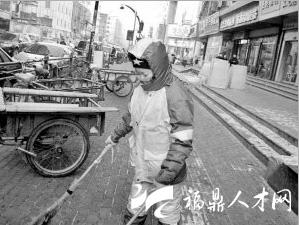 嚴(yán)寒中,錄取者已開始上崗,來往的行人不會探究這身工裝背后的研究生學(xué)歷