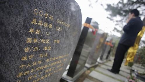 武漢石門(mén)峰名人文化園內(nèi),環(huán)保葬區(qū)部分墓志銘上留有QQ號(hào)碼和空間鏈接,數(shù)年間仍有人進(jìn)空間留言。