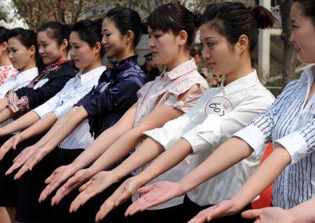 在南航招聘現(xiàn)場,鄭州航空工業(yè)管理學(xué)院空乘專業(yè)的王璟和記者分析:“空姐招聘根本就沒有專業(yè)限制,對學(xué)歷要求也不高,只要形象好,都有機(jī)會當(dāng)空姐。我們這些專業(yè)跟航空有關(guān)的學(xué)生根本不占優(yōu)勢?!睋?jù)她講,許多同學(xué)都沒當(dāng)成空姐。