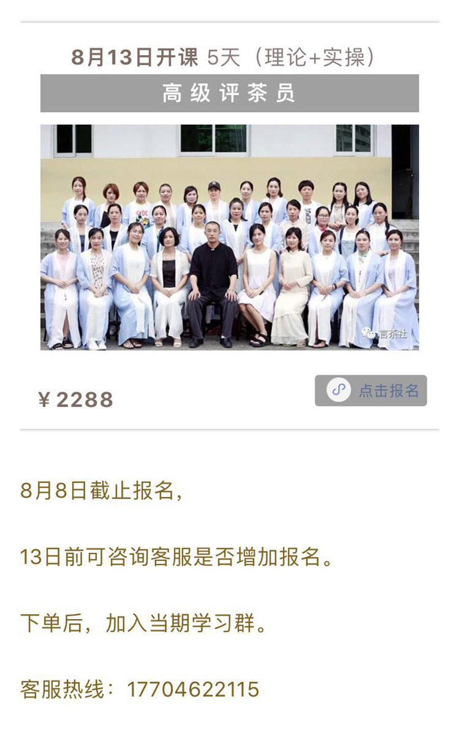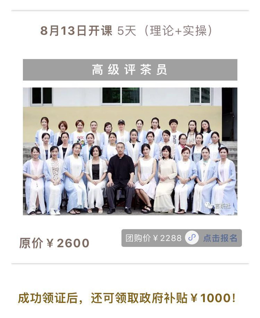 【八月13日-高級(jí)評(píng)茶員】開班啦!原價(jià)2600,通過【言茶社】報(bào)名只需2288!