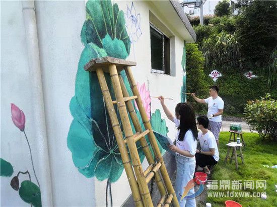 為保證墻繪質(zhì)量與進度,每天早上6點鐘,實踐團成員們就拿著顏料、畫筆、水桶等工具開始創(chuàng)作。炎炎夏日,腳手架上忙碌著的身影成為了一道靚麗的風(fēng)景線。為了讓實踐團能夠全身心投入到創(chuàng)作當(dāng)中,疊石鄉(xiāng)團委聯(lián)合竹陽村團支部為實踐團師生提供了良好的后勤保障。