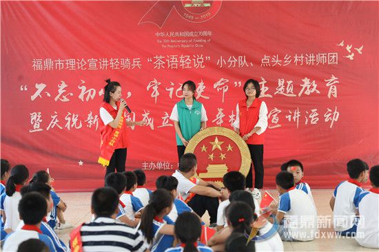 9月27日,點(diǎn)頭鎮(zhèn)組織福鼎市理論輕騎兵“茶語(yǔ)輕說(shuō)”宣講小分隊(duì)、點(diǎn)頭鄉(xiāng)村講師團(tuán)赴點(diǎn)頭中心小學(xué)開(kāi)展“不忘初心、牢記使命”主題教育暨慶祝新中國(guó)成立70周年校園宣講活動(dòng),受到廣大師生的歡迎。