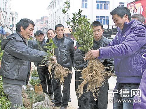 1月26日,正值春節(jié)期間,還正是人們走親訪友的時期,而且天氣寒冷,然而筆者在福鼎市點頭鎮(zhèn)海乾路的臨時苗木市場看到的是另一番購買果、樹苗的新景象,農民朋友們成群結隊來趕墟買苗,形成一派熱熱鬧鬧的村鎮(zhèn)“苗墟”,生意紅火。