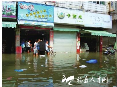 據(jù)指導(dǎo)員陸顯軍介紹,昨天中午12時(shí)水位最高時(shí),街道上水位達(dá)1.3米。