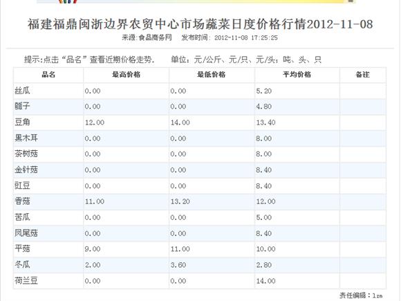 福建福鼎閩浙邊界農(nóng)貿(mào)中心市場蔬菜日度價格行情
