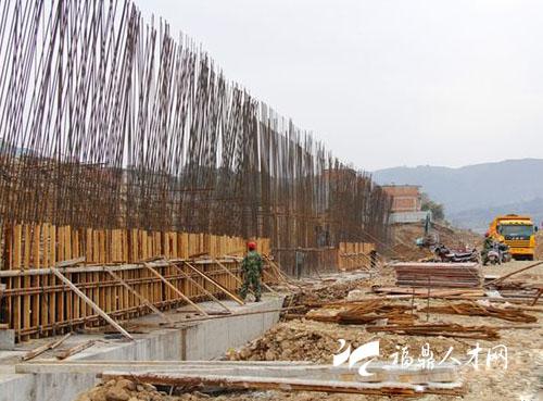 2月21日,記者走進(jìn)環(huán)城北路項目施工現(xiàn)場看到,到處是忙碌的施工身影。幾輛大型汽車正在往來裝運(yùn)土方和建筑材料,工人門正在澆鑄斜坡式擋土墻(如圖)。