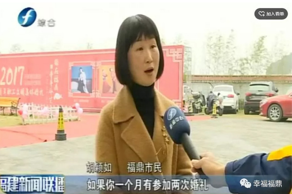 市民胡穎如說:“平常一般的朋友(婚禮紅包)要1600多元,1800多元,甚至達(dá)到2000多元。一般我們福鼎的工資(每月)大概四五千元,如果你一個(gè)月有參加兩次婚禮,你其它費(fèi)用都沒有了?!?