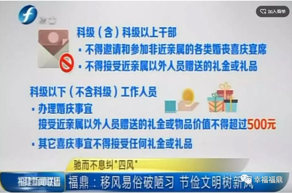 2017年10月,作為全省移風(fēng)易俗試點(diǎn)縣的福鼎,率先出臺(tái)《黨員干部婚喪喜慶事宜管理規(guī)定》。