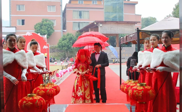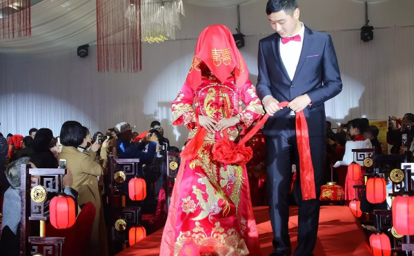 據(jù)了解,此次婚禮全程采用中式嫁娶習(xí)俗,新娘頭蓋紅蓋頭,新人手拿紅繡球,跨火盆、跨馬鞍等婚禮流程與傳統(tǒng)中式儀式相同。在活動(dòng)之中,還在新人之間進(jìn)行抽獎(jiǎng)活動(dòng),一、二、三等獎(jiǎng)獎(jiǎng)品分別為價(jià)值不等的旅游券。