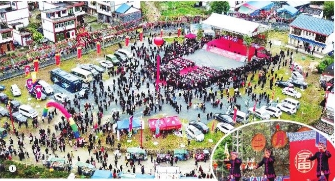 而當(dāng)?shù)叵ば臏?zhǔn)備的節(jié)目也是亮點多多。音樂起處,畬族特色舞蹈——竹竿舞和著節(jié)拍進退跳躍。竹竿一開一合來回拍打著,舞者敏捷瀟灑,動作自然,吸引了不少游客上場附和體驗。畬族傳統(tǒng)婚嫁儀式也是此次活動的“重頭戲”之一。伴著鑼鼓聲聲,身著畬族服飾的迎親隊伍抬著花轎、嫁妝,浩浩蕩蕩地從人群中走來,一場原汁原味的畬族婚嫁表演就呈現(xiàn)在人們的面前。