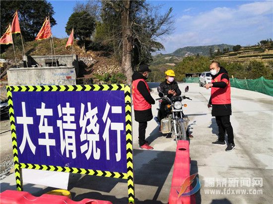 2月9日,貫嶺鎮(zhèn)松洋村新建的松鐵線道路平坦開闊,彎道盡頭一輛摩托車快速穿出,看到卡口后,放緩車速,停靠在道阻前,黨員志愿者上前例行拋出三個(gè)問題:從哪里?到哪去?干什么?