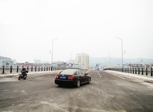 該大橋于去年在原江濱人行橋地段上施工建設(shè),建設(shè)線道總長(zhǎng)420米,其中大橋長(zhǎng)230米,兩岸接線長(zhǎng)190米。道路等級(jí)為城市Ⅱ級(jí)干道,采用瀝青澆灌路面,按雙向四車道設(shè)計(jì),橋?qū)?2米,工程總投資3600多萬(wàn)元。該大橋設(shè)計(jì)采用邊跨預(yù)應(yīng)力空心板梁、中跨預(yù)應(yīng)力變截面魚腹式連續(xù)箱梁橋。