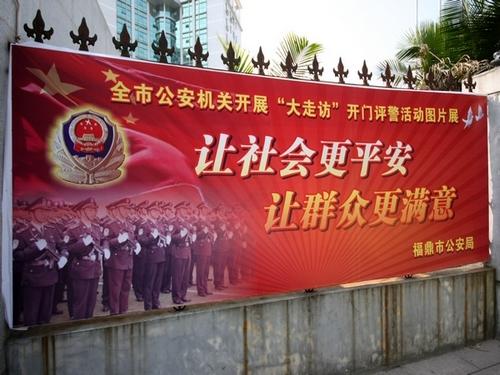 4、舉行一場圖片展。福鼎市局在市局大樓圍欄設(shè)計(jì)了6副宣傳欄,舉行了以“讓社會(huì)更安全、讓群眾更滿意”為主題的“大走訪”開門評(píng)警活動(dòng)圖片展。