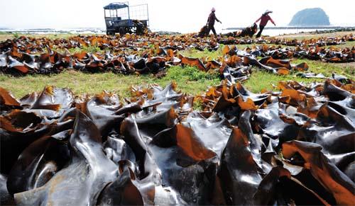 金周強告訴記者,海帶都是每年11、12月份放苗養(yǎng)殖的,直到隔年4、5月份收成。其間,只要每隔兩三天巡查一次,防止被漁船破壞即可。今年外地大部分養(yǎng)殖地區(qū)海帶上市相對比較遲,造成部分地區(qū)海帶緊缺,以致海帶價格被抬高,收購商收購生海帶的價格由去年的0.25元上升至0.35元,經(jīng)過高溫、烤干兩道工序加工后的海帶成品更是可達每斤18~20元,形勢可人!