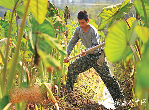 “他們就是沖著我這‘芋王’的名聲來的!”忙碌在芋田里, 43歲的張桂鳳一臉暢快。種植檳榔芋,他已有21個(gè)年頭。