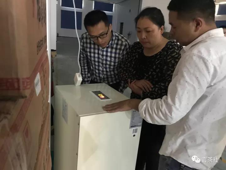 倉庫大門一打開,就可以看到濕度控制機(jī),整齊排放的茶產(chǎn)品和吸濕的炭火堆,聞到迎面的純凈干茶香。