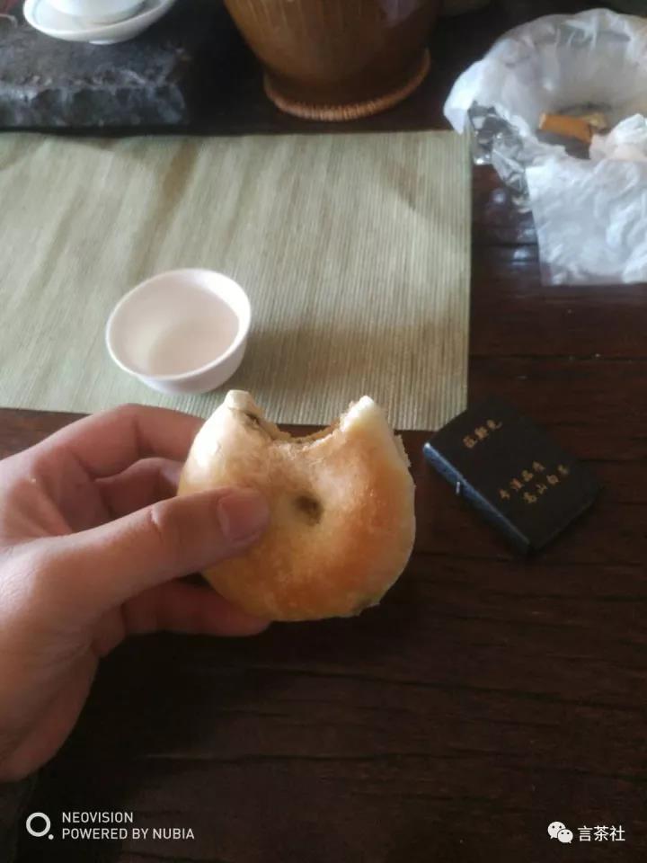 今天,我們的成員臨時起意搞場聚會。不巧,天灰蒙蒙,還接到停電的通知。但是絲毫不影響我們參加這次茶聚的興致。今天為我們提供場所的是藏醇苑茶業(yè)有限公司,一大早還為我們買來了點(diǎn)頭鎮(zhèn)特有的“網(wǎng)紅光餅”,熱乎乎的光餅里面夾著入口即化的豬肉。