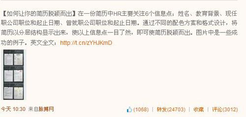 李開(kāi)復(fù)在微博上發(fā)表一條制作個(gè)性簡(jiǎn)歷的詳細(xì)案例,不少網(wǎng)友大贊“真心有用”。